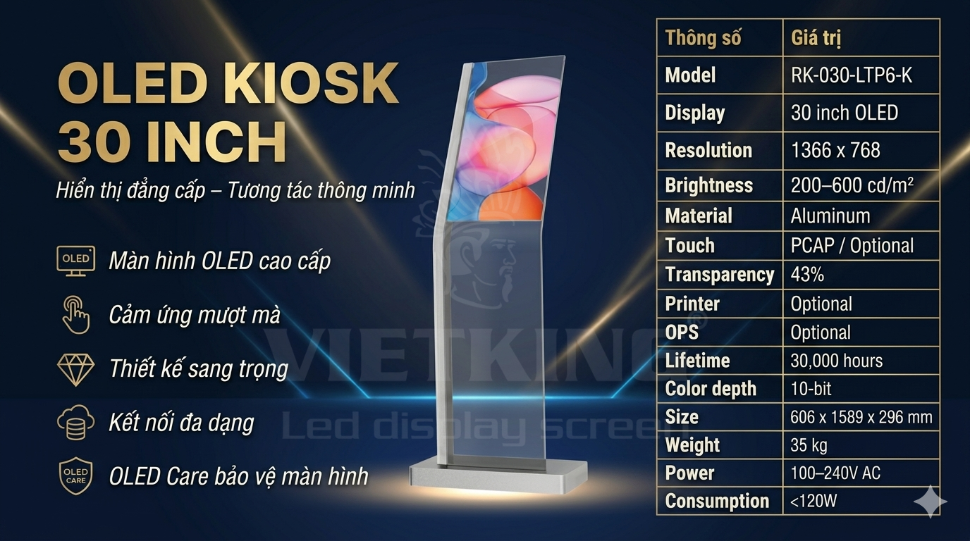 👉 OLED Kiosk 30 inch – lựa chọn lý tưởng để nâng tầm trải nghiệm khách hàng và tăng hiệu quả bán hàng.